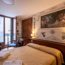 Palazzo Cavagnis, home of the guesthouse, is located in the historic center of the city, a short distance from Piazza San Marco and the Rialto Bridge. In this typical Venetian building of the eighteenth century you can stay in beautifully frescoed rooms, overlooking the canal or the rooftops of the city. Single guests, families and groups find a comfortable accommodation being the type of rooms large. Every morning, before leaving to discover Venice and its lagoon or taking advantage of cultural events of national and international importance organized during the year, you can enjoy a good breakfast served at the buffet in the airy and bright lounge. On the Piano Nobile there is the Salone Busetto, used for conferences, cultural events and concerts.